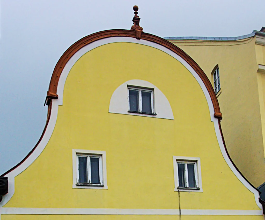 Dům kombinuje gotické základy, renesanci a barokní výzdobu. Barokní štít, volutami, bosáž a šambrány zdůrazňují jeho historický charakter.